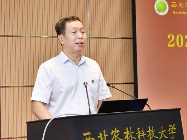 吴普特欢迎海内外优秀人才选择西农实现人生价值。他回顾了学校87年悠久的办学历史和取得的重大成就,阐述了学校的发展思路及奋斗目标,要求新教工牢记习近平总书记嘱咐,做学生为学、为事、为人的示范,并寄语新教工做有情怀有担当有作为的西农人。他强调,要有情怀,厚植家国情怀,热爱祖国,胸怀“国之大者”;要有担当,牢记立德树人根本任务,对标岗位职责,以给学生“一碗水”,自己要有“一桶水”的要求,坚决摒弃浮躁,以持久的耐心担当,不断提高自身水平;要有作为,以“功成不必在我”的精神境界和“功成必定有我”的历史担当,在服务学校发展和国家战略中有新作为,为学校创建世界一流农业大学和为实现第二个百年奋斗目标、实现中华民族伟大复兴的中国梦而不懈努力。