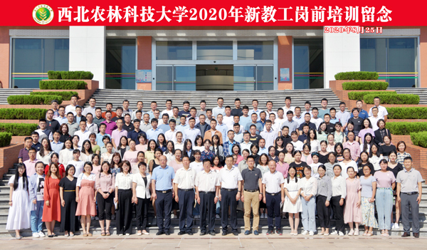 校领导吴普特、徐养福、马建华及相关部门负责同志参加岗前培训开班典礼,并为新教工代表佩戴校徽, 185名新教工正式加入学校大家庭,与学校同呼吸、共奋进,开启建设世界一流农业大学的新征程。