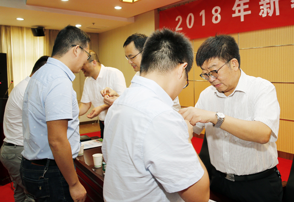 吴普特、马建华、闫祖书等领导为新教工佩戴校徽